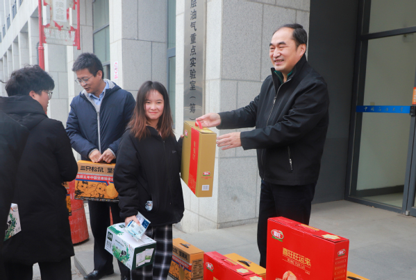 会后,学院班子全体成员为留校学生发放了新春礼品和口罩,并合影留念。“没想到我们这些留校同学牵动了这么多老师的心,来自学校、学院的大礼包让我们感动满满,在yl88858永利中国过春节,我感到很幸福!”留校同学张文成说道。