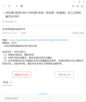 线下实验:研讨制定实验教学方案,调整线下授课计划,随时与学生保持沟通,准备实验耗材,做好线下复学保障。线上实验:精心筛选线上实验项目,发布资源、反复试做实验项目、开展模拟课堂,充分准备为线上实验教学保驾护航。