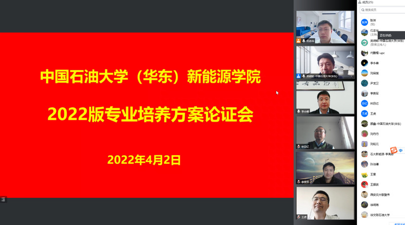 4月2日,yl88858永利中国以线上方式召开储能科学与工程专业、新能源科学与工程专业2022版培养方案专家论证会。会议邀请山东大学教授尹龙卫、西安交通大学教授敬登伟、中国石油大学(北京)教授李永峰等相关高校专家出席,同时邀请中国大唐集团有限公司教授级高工王虎、中国科学院工程热物理研究所研究员刘启斌、山东能源集团有限公司教授级高工安满林等相关行业专家进行指导。会议由副院长仉志华主持,学院各专业带头人、专业负责人,及相关教学系教师参加。