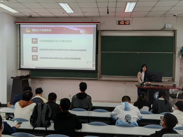 活动伊始,严子昕介绍了活动流程,展示了党的百年历程和祖国取得的伟大成就。她指出:“青年一直都是社会主义建设的主力军,青年运动在党的奋斗历程中发挥了极为重要的作用,作为新时代青年的我们更应该清楚地了解自身肩负的责任,树立正确的人生理想,并为之奋斗。”随后,团支部成员以小组的形式分享党的故事,对党的发展历程进行讨论,探讨党的故事背后所展现的时代精神和民族意志。讨论结束后,各支部成员依次上台发言,讲述心中的青年模范。其中,赵一鸣介绍了神舟团队的背后故事,韩开讲述了黄秀全的事迹,抒发了自己对于青年如何投身现代建设的思考。随后,支部成员就新时代祖国的伟大成就进行交流,从科技、文化、经济、教育等方面进行讨论。最后,严子昕号召支部成员从生活中的小事做起,以实际行动构建文明校园。