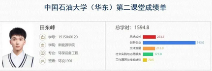 在耀眼成绩的背后,田东峰还是个“六边形战士”。他的第二课堂总学时达到1594.8个,位列全校2019级第一名,他在思想成长、创新创业、社会实践、志愿服务、学生工作上都结满了丰硕的果实。