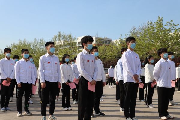 “响应时代号召,续棒民族复兴!”在王鹏翔,学生代表田鸽、李维凯、杨子钰的领诵下,百名学生齐诵“一心向党,奔赴远方”致献词,深切表达了青年学子们的拳拳爱国情,铮铮强国心。