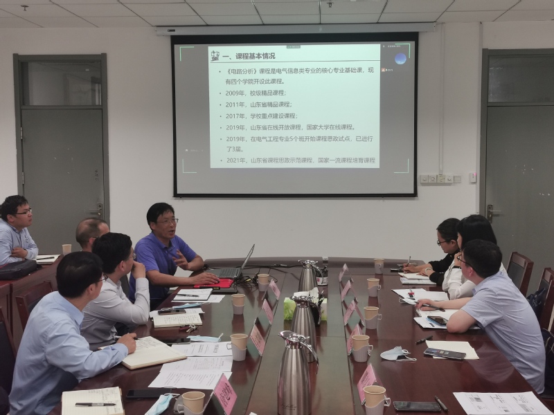 研讨会上,马文忠、周凡分别分享了《电路分析》和《过程设备设计》课程思政建设的经验和体会。他们分别从课程思政元素构建、教案设计、讲授方法、课程思政目的等方面分享了课程思政案例及体会,引起了与会人员的广泛共鸣。我院承担的《电路分析》和《过程设备设计》于2021年入选山东省课程思政示范建设项目。