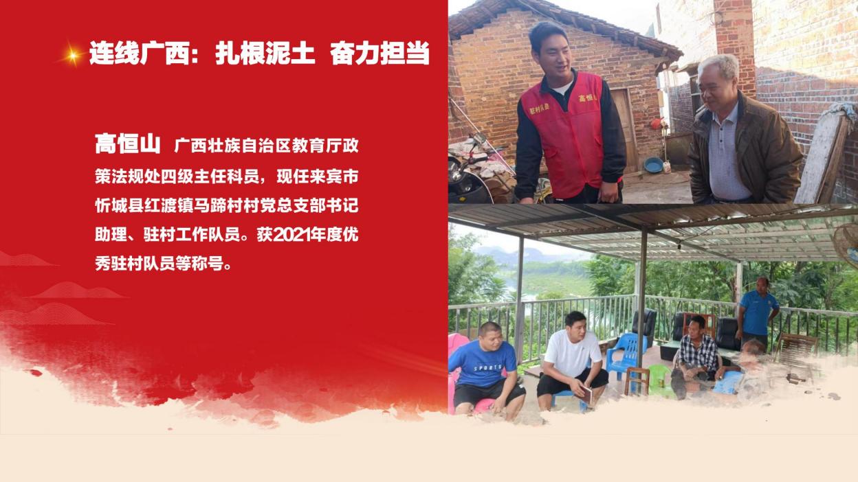 2019年1月17日,习近平总书记到南开大学考察时,勉励广大师生:“要把学习的具体目标同民族复兴的宏大目标结合起来,为之而奋斗。只有把小我融入大我,才会有海一样的胸怀,山一样的崇高。”越来越多的青年一代积极响应党和国家的号召,到祖国需要的地方去贡献力量。特别是在脱贫攻坚的战场上,一批批年轻人用脚步丈量土地,用真情传递温度,用智慧改变观念,将汗水挥洒在祖国希望的田野上,在祖国大地上书写着青春的力量,在赓续奋斗中助推“摆脱贫困”的伟大壮举。来自广西的选调生高恒山作为其中的一份子,毕业后放弃了大城市的工作,毅然决然地选择了到广西,在脱贫攻坚的一线学习、奋斗、奉献。活动现场,他用自己的亲身经历为团员们展现了脱贫攻坚和乡村振兴一线的鲜活场景,小到走访辍学儿童、与村民们一起种竹笋,大到为村里修公路、搞产业、拉项目,这些经历让团员们切身感受到了打赢脱贫攻坚战的艰难和不易,也鼓舞了团员们到基层一线,到祖国最需要的地方建功立业的信心。团员代表孔令剑表示:“作为一个农村出来的孩子,恒山学长的分享让我感受到了身上的责任,我要倍加努力学好专业知识,提升自身的综合素养,争取能在更多更需要的地方贡献自己应有的力量。”