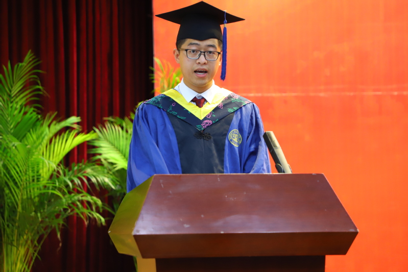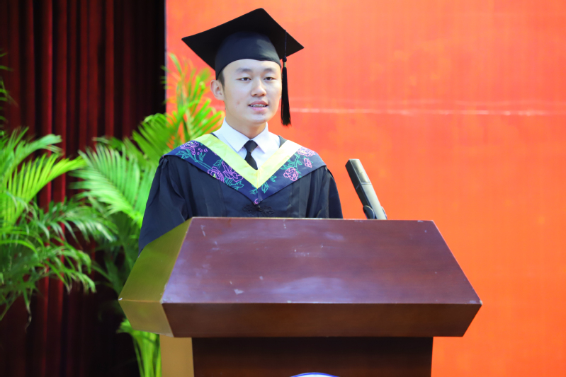 王伟龙、褚志炜分别代表2022届本科毕业生以及研究生毕业生上台发言。王伟龙表示毕业是学业的终点,亦是新的人生起点,“作为一名石大学生,定会牢记母校‘惟真惟实’的校训,不忘初心,砥砺前行,做有理想、有担当的新时代青年。”褚志炜与在座学子共勉,带着社会责任感,在各行各业施展才华,“作为一名石大毕业生,无论我们身在何方,有着怎样的际遇,都要谨记‘惟真惟实’的校训。今天我以石大为自豪,明天母校将以我为骄傲!”
