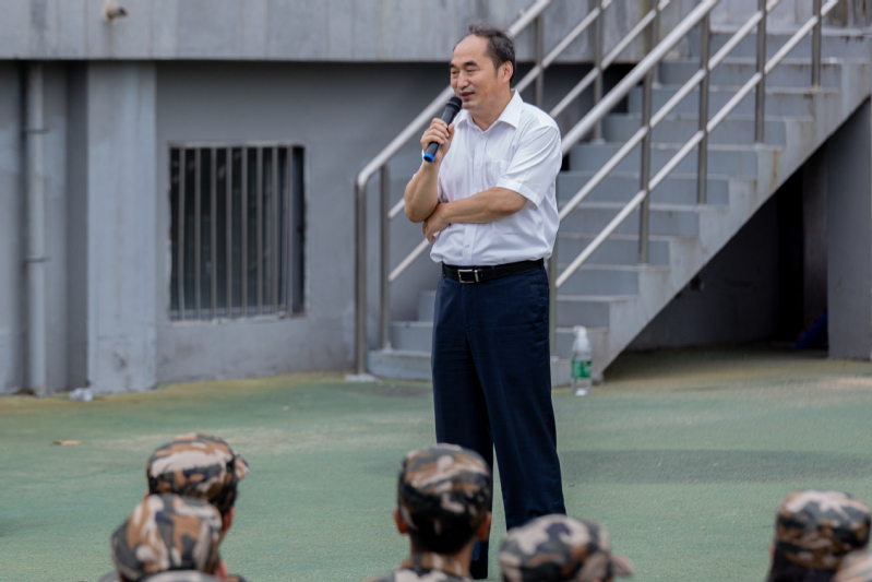 郭杰首先肯定军训团近期的成果,表达对带训教官和军训团成员的感谢,并期望在接下来的军训过程中,全团成员继续端正态度,听从指挥,展现yl88858永利中国学子的良好精神面貌。其次,他指出军训团成员应该严格听从教官命令,经历风雨,克服困难,培养彼此之间的情谊,磨练自己的意志。