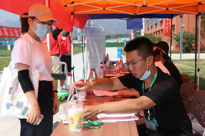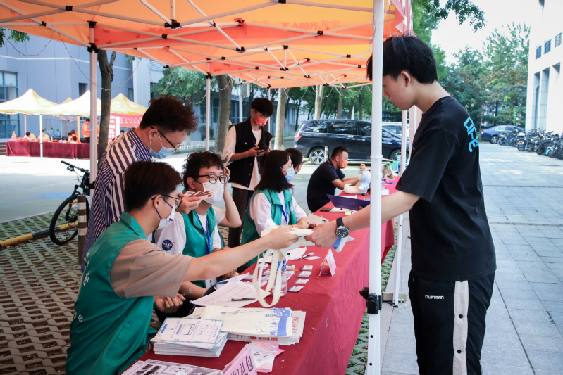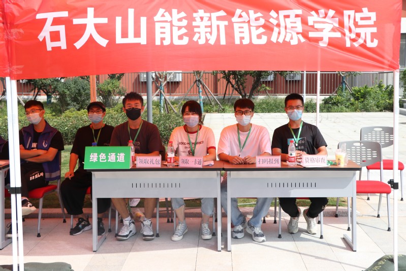 学院分别在唐岛湾、古镇口两校区设立迎新点,本科生、研究生分别在两校区报到入学。累计招募迎新点志愿者、学生公寓处志愿者、校门引导志愿者等6类学生志愿者累计88名。由于疫情防控要求,家长不能入校,新生独立完成报到流程,在志愿者的引导下,新生依次完成入学资格审查、领取校园卡、扫码预报到、领取相关纸质材料、石大专属帆布包等环节。