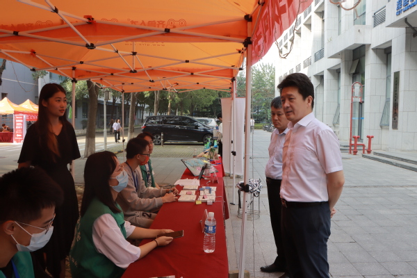 校党委书记王勇在唐岛湾校区视察学院迎新情况
