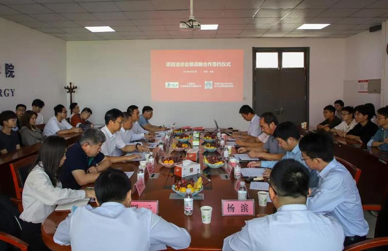 一重集团大连核电石化有限公司石化装备公司副总经理朴明皓、技术中心技术总监袁继军、战略规划部高级经理艾丹凤、技术中心研究员蔡景瑞,学校新能源、材料学院相关教师代表,课题组参与上述会议。