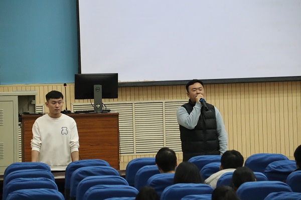 为加强年级管理,增强学生干部责任意识,更好地开展本学期工作,3月5日晚,2022级全体学生干部工作会议在南教100举行,本次例会由辅导员骆浩冉、王伟龙主持,全体2022级学生干部参加。