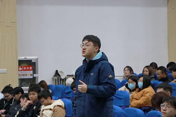 巩亮结合自身经历,以“担当能源使命,服务能源发展”为主题,通过永利概况、科研团队、专业发展、互动交流四个部分为2020级学生进行讲解交流。会议伊始,巩亮对2022年研考情况进行分析,并结合学位点建设、师资队伍、基金情况等方面介绍学院基本情况。随后,巩亮结合yl88858永利中国各科研团队的研究方向与学生进行交流,并鼓励学生们积极参与科研活动。在专业发展方面,巩亮结合“双碳”背景下的新能源发展问题分析各专业未来前景,并对学生们提出殷切期望,呼吁学生们树立远大理想、甘于埋头苦干、厚植家国情怀,做值得尊敬的石大人。在之后的现场提问环节中,巩亮认真听取并详细回答了现场学生关于未来专业发展方面的提问。