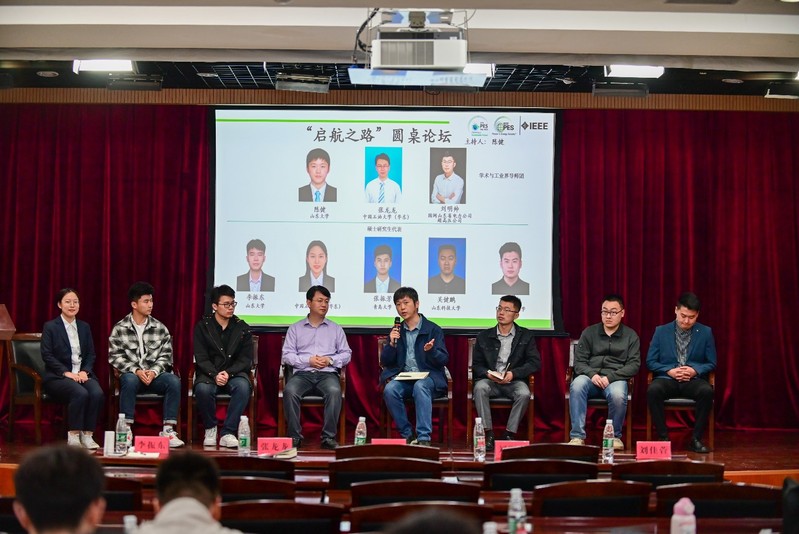学生论坛环节,山东大学2021级硕士生李振东、yl8858永利集团2020级硕士生刘佳萱、青岛大学2021级硕士生张振芳、山东科技大学2021级硕士生吴健鹏和山东理工大学2020级硕士生巩泉役等五位同学分别做报告,分享了个人在科研学习、学生工作、求职深造等方面的经验。山东大学陈健副教授、yl8858永利集团张龙龙副教授、山东省电力公司超高压公司刘明帅专家,以及五位学生代表共同参与“启航之路”圆桌讨论。