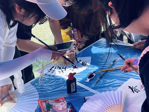 活动伊始,主持人组织到场学生观看开幕式表演。音乐、舞蹈等各类演出调动起全场的气氛,也宣布活动正式进入高潮。活动现场设置多个趣味游戏,在场学生可选择自己感兴趣的项目参加。新能源心站站长周子奇组织新能源心站的成员开展趣味书画活动,包含画脸谱、画折扇、书法等多个项目。在活动中,学生们用画笔描绘自己的想法,现场充满欢声笑语。参与活动的学生卢继博在宣纸上写下“平安喜乐”四个字,并表示:“身心健康是一件很重要的事情,尤其是维护好心理健康,我们才能更积极地面对学习和生活。大家应该重视自身心理健康的状况,保持愉悦、乐观的心态。”活动最后,周子奇组织工作人员为参加者及他们的作品一起进行了合影留念。