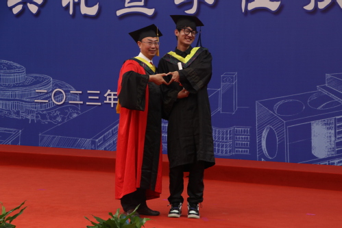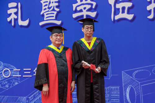 在温馨的歌曲声中,吴明铂、巩亮、仉志华、王振波、林日亿分别为毕业生授予学位。微笑、握手、拨穗、合影,一声声快门,一次次拥抱,定格了2023届新能源学子的毕业美好瞬间。