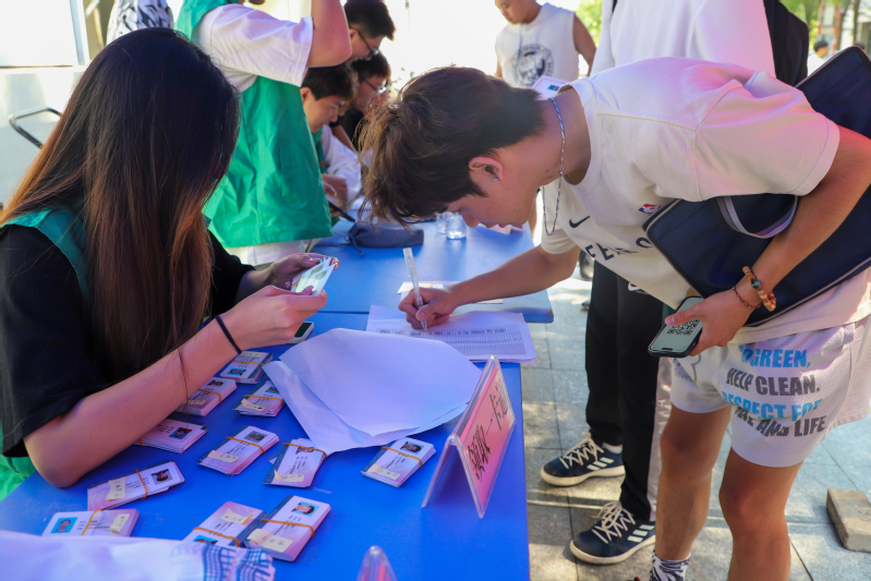 唐岛湾校区迎新志愿者为新生分发校园卡