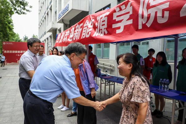 学院党委书记陈灵泉与新生及家长们亲切交谈,了解学生报到时的心情及期望,并寄语青年学子树能源报国之志,以奋斗之姿将“能源的饭碗端在自己手中”。