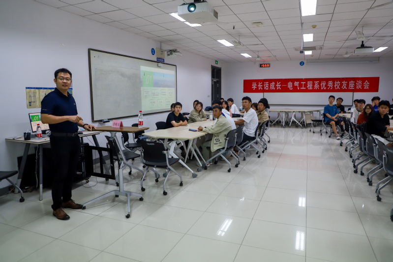 另外,以“学长话成长”为主题的优秀校友座谈会也同步召开,来自国电投山东电力工程咨询院的徐峻涛和河北工业大学的明磊两位优秀校友,分别从就业和继续深造两个方面,结合亲身经历和在校生进行了经验分享,现场气氛热烈。