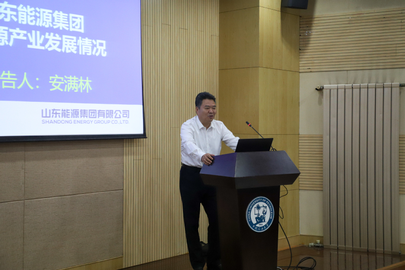 安满林在报告中简单介绍了目前阶段山能集团新能源产业的发展情况以及与石大yl88858永利中国在新能源领域的合作情况。随后,他提到山能集团的未来产业规划,并表示山能集团与石大将继续深化合作,创新合作成果,加强科研成果产业推广,发挥校企共建的独特优势,向着建设新能源领域特色鲜明的研究型学院的目标奋力迈进,为服务国家战略需求和经济社会发展做出积极贡献。
