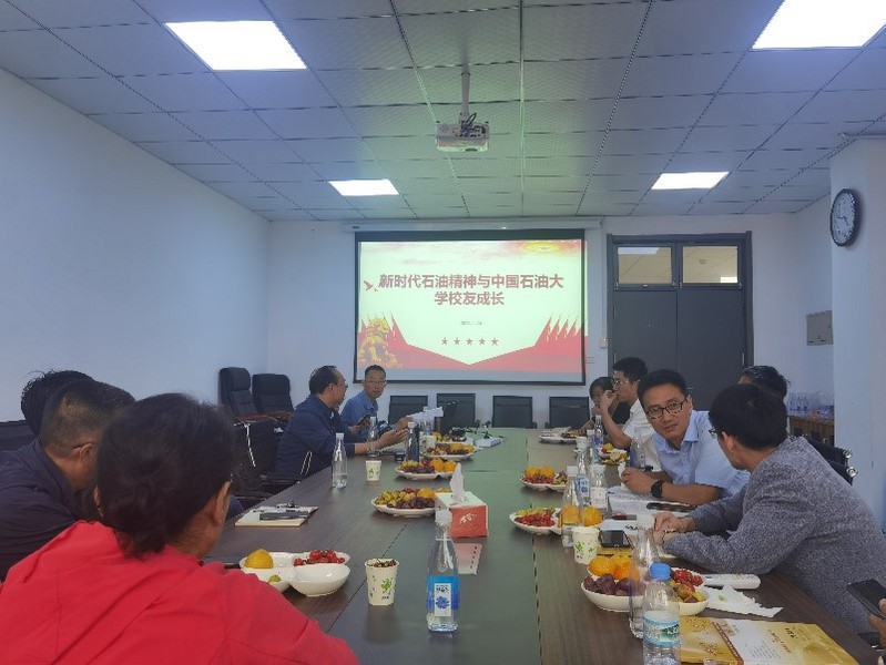 会议第三阶段由系支部书记冯洪庆主持,主题为新时代石油精神与中国石油大学校友成长。会议结合新中国石油工业发展历程,首先学习了石油精神、大庆精神与铁人精神,研讨了新时代石油工业服务国家能源战略、确保国家能源安全的重要作用,最后介绍了中国石油大学培养的一系列杰出人才,并结合本学科老前辈时铭显院士、任瑛教授的事迹,开展了师德师风学习。
