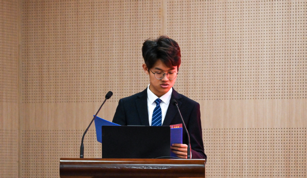 校学生会代表发言 秦浩田摄