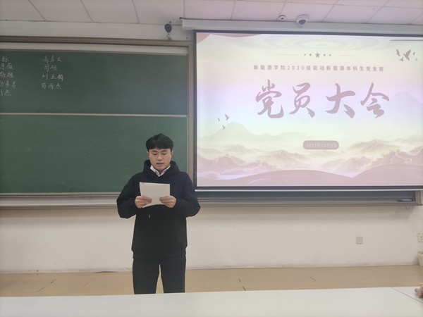 12月8日,我院2020级能动与新能源本科生党支部于南教楼119教室召开党员大会。会议由党支部书记孔令剑同志主持,支部成员参加,大会根据《中国共产党章程》和《中国共产党发展党员工作细则》要求,主要研究讨论了朱标、陈勃旭等九名预备党员的转正问题。