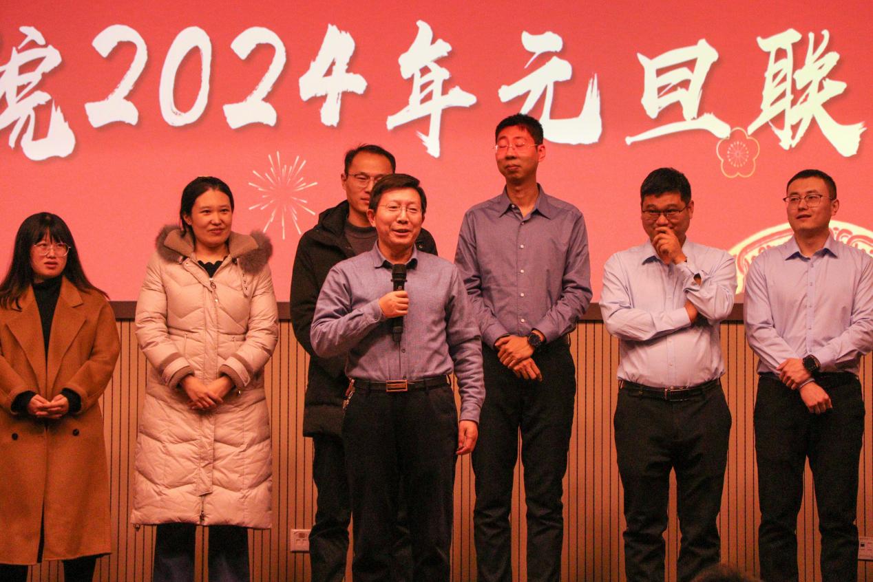伴随着欢快的音乐,联欢会在一声声“恭喜恭喜”中拉开序幕。首先登场的新入职教师队伍,他们讲述了在学院大家庭中感受温暖、收获成长的心路历程,随后,智林杰教授为学院和全体师生送上祝福。