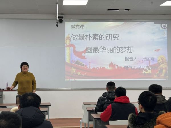 为了进一步加强电气工程系研究生党支部的建设,推动党员的思想教育和理论学习,2024年1月20日,yl88858永利中国电气研究生第一和第二党支部在文体中心B71联合举办了一场主题党课活动,特邀请电气工程系党支部书记张丽霞老师为大家讲授主题为“做最朴素的研究,圆最华丽的梦想”的党课,共同探讨国家的富强与人才培养之间的关系。