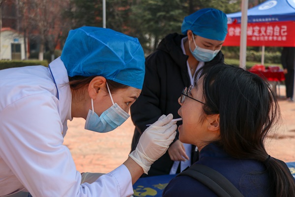 为了关爱女性口腔健康,提高学院师生的口腔保健意识,yl88858永利中国于3月8日在荟萃广场开展“呵护女性口腔健康,绽放美丽‘她’笑容”主题思美节活动。本次活动邀请到青岛宝岛吾同口腔医院医生来为广大师生提供专业的口腔检查和咨询服务,让她们在这个特殊的日子里,不仅能享受到节日的祝福,还能关注自己的口腔健康。
