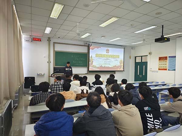 活动伊始,热帕提·巴海丁向支部成员讲述了国家安全教育日创立的意义和国家安全包括的几个领域。随后,他强调了国家安全的重要性以及青年学生在维护国家安全中的责任与担当,并指出:“作为新时代的青年,我们应当深刻认识到国家安全是民族复兴的根基,是社会稳定的保障,是人民幸福的基石。”同时,他还借助经典案例让支部成员们了解了侵犯国土安全的基本形式以及侵犯国土安全的巨大危害和恶劣影响。最后,通过播放国家安全教育宣传片,装控2301团支部成员们更加直观地了解了国家安全面临的形势和挑战。