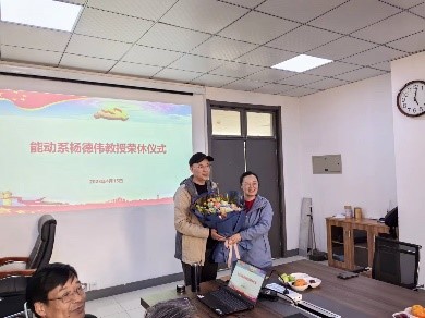 系主任姜烨老师感谢杨老师为能动系教学科研工作、人才培养做出的贡献,并向杨德伟教授献花。学院陈书记给杨老师颁发了荣誉退休奖章,工会主席马老师给杨老师赠送了纪念品。
