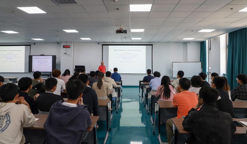 5月7日,加拿大卡尔加里大学教授,传热传质和数值传热等领域著名专家Abdulmajeed A. Mohamad教授主讲第73期新能源论坛,做题为“传热强化(Heat Transfer Enhancement)”及“格子玻尔兹曼方法基础(Lattice Boltzmann Method, Fundamentals,LBM)”的学术报告。会议由学院副院长巩亮主持,学院部分师生参与论坛。