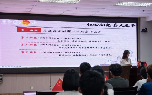 6月15日,宣讲活动在工科楼D座345教室成功举办。薪火延安宣讲团成员胡人仁、王志达担任主讲人,为支部成员深入解读了延安精神与习近平总书记的生态文明思想。胡人仁从延安精神的形成、发展、主要内容等方面,全面剖析了延安精神的丰富内涵与时代价值,并介绍我校传承延安精神的举措。王志达结合我国生态文明建设的成功实践,生动讲解了生态文明思想的深层含义、基本原则和实践路径,激发了支部成员积极参与生态文明建设和绿色环保实践的热情。