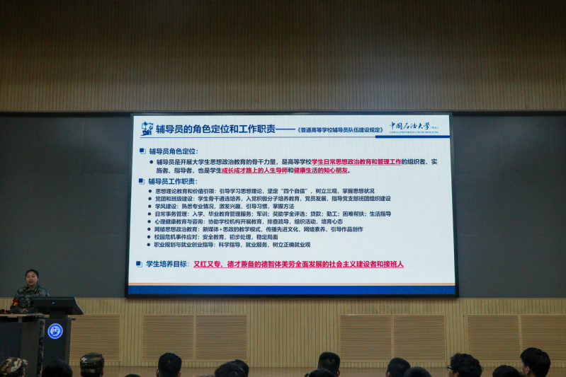 会议伊始,郭晓静向新生们详细介绍了辅导员的角色定位和工作职责。辅导员作为学生成长道路上的引路人,将在思想、学习、生活等各个方面为同学们提供指导和帮助。接着,郭晓静深入讲解了大学与高中的区别。在学习内容方面,大学课程更加专业化和多元化,涉及的知识面更广。学习方式上,大学更强调自主学习,学生需要具备更强的自我管理能力。学习环境也有所不同,大学拥有丰富的学习资源和更加开放的学术氛围。生活方式上,大学生活更加独立自主,需要学生自己安排时间和处理各种事务。随后,郭晓静介绍了学校的相关毕业要求和学生培养体系。在学生工作体制方面,学校致力于为学生提供全面的发展平台。关于第一课堂,郭晓静强调了不要旷课、考试作弊等重要事项,提醒同学们要以严谨的态度对待学业。同时,还介绍了第二课堂的丰富多彩的活动,包括社团活动、志愿服务等,鼓励同学们积极参与,拓展综合素质。在资助和评奖评优方面,郭晓静详细说明了相关政策和申请流程,为有需要的同学提供帮助和激励。