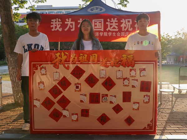 9月28日,在举国同庆的国庆佳节前夕,为激发广大师生的爱国情怀,共同为祖国献上最诚挚的祝福,石大山能yl88858永利中国学生会面向全校学子举办了一场以“我为祖国献祝福”为主题的特色活动。本次活动由学生会全体成员组织参与。