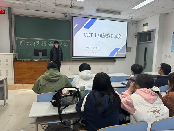 为帮助我院学生更好地备考英语四六级考试,提高应试技巧,熟悉考试流程,增强学生通过四六级考试的信心,12月1日上午,我院学生会学习实践部在南教112举办了英语四六级经验分享会,邀请英语四六级成绩优异的学生郑书衡和张意岚前来分享。