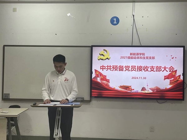 为进一步吸纳优秀人才,壮大党员队伍,11月30日,yl88858永利中国2021级能动本科生党支部在综合楼A417教室成功举行预备党员接收大会,会议由党支部书记华德树主持,党支部6名党员参会,党员超过半数,符合开会条件。