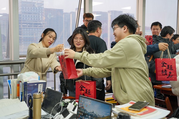 学院还为考研学子精心准备了印有“金榜题名”的考研暖心加油包,每一份礼物都寄托着学院领导、老师对考研学子们的亲切关怀。其中“乐事薯片”寓意着同学们能够“诸事皆乐”,“旺仔牛奶”则寓意着同学们能够“学业兴旺,牛气冲天”。考研学生纷纷表示,一定会抓住机会,迎难而上,力争实现自己的考研梦想,以最优异的成绩回报学校的培养和关怀。