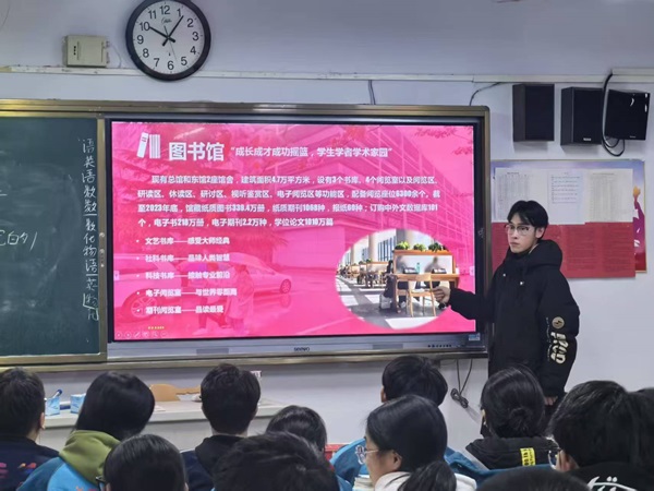 为进一步扩大宣传范围,让更多学生充分了解我校,选择报考我校,“咱们讲的都队”宣讲队在1月14日晚再次返回母校“武城县第二中学”利用晚自习时间开展“寄情母校,宣传石大”社会实践活动,并在高三三十九班进行了宣讲活动。