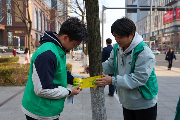3月12日至3月19日期间,学院举办了护绿主题志愿服务活动。志愿者们分工明确,进行了浇水、宣传护绿和垃圾分类知识、为树干缠绑防虫胶带等工作,并设计并竖立了多块带有护绿温馨提示语的警示牌。此次活动提高了公众的环保意识,为美化环境贡献了力量。