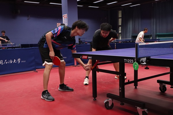 赛事采用三局两胜淘汰制,选手分批次在球台展开角逐。赛场上,选手们各展所长,推挡扣杀间尽显扎实功底;比分交替上升,多场比赛战至决胜局方见分晓。学院乒乓球队队长汤君仪全程提供技术指导,确保赛事有序进行。经过数轮激烈比拼,选手们愈战愈勇,将比赛推向高潮。最终能动2402覃荣恒获得男子单打冠军,新能源2301占婉琳获得女子单打冠军,电气2305汤君仪和新能源2405陈玉琢(研究生)获得男子双打冠军,能动2203金怀宇和储能2201叶欣获得男女混合双打冠军。
