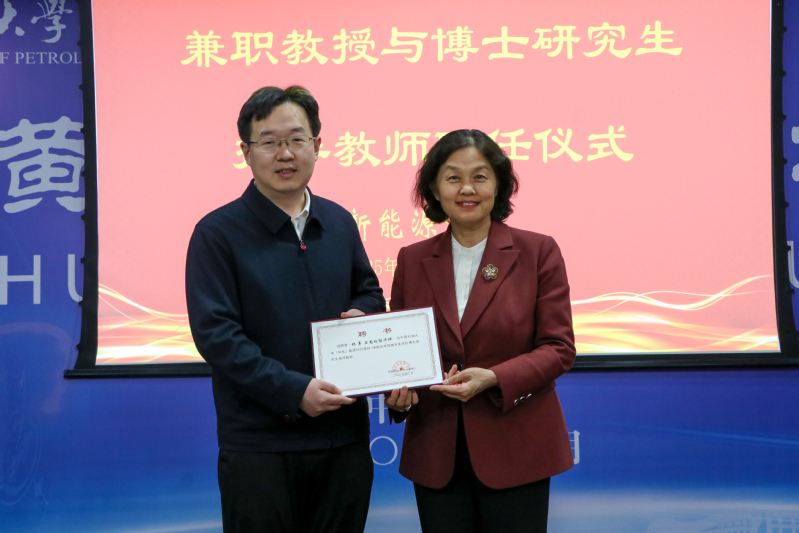 论坛开始之前,学校举行了兼职教授及博士研究生指导教师聘任仪式。聘请杨勇为学校兼职教授、博士研究生指导教师,同时聘请中石化高级专家倪承波为学校兼职教授。学校副校长戴彩丽为两位专家颁发聘书。