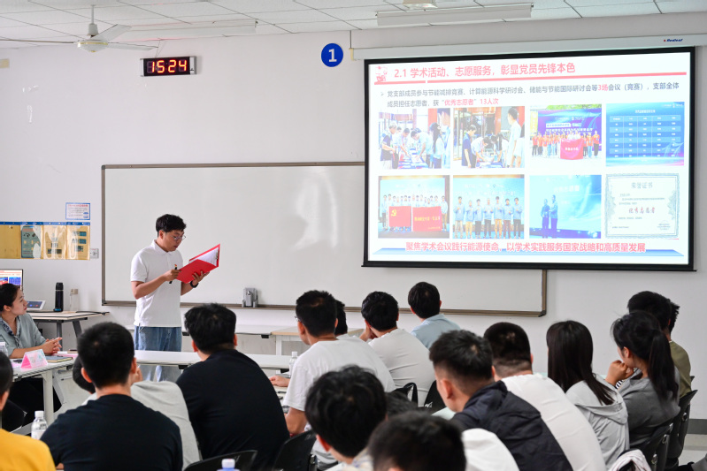 党支部书记丁元贺以《紧抓永利集团 争当能源先锋 建成能源特色型研究生样板党支部》为题详细汇报了第四批“全国党建工作样板支部”获批以来的的培育进展情况,重点介绍了支部在“党建+科研+志愿服务”融合模式下的创新举措,为支部建设焕发出了新的动力。