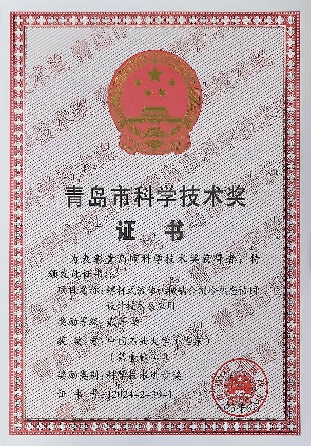 7月18日,青岛市科技创新大会召开,对获得2024年度青岛市科学技术奖的项目和人员进行表彰。我院王增丽教授作为第一完成人主持的“螺杆式流体机械啮合副冷热态协同设计技术及应用”项目,荣获青岛市科学技术进步二等奖,该项目在高端设备制造领域取得创新突破。