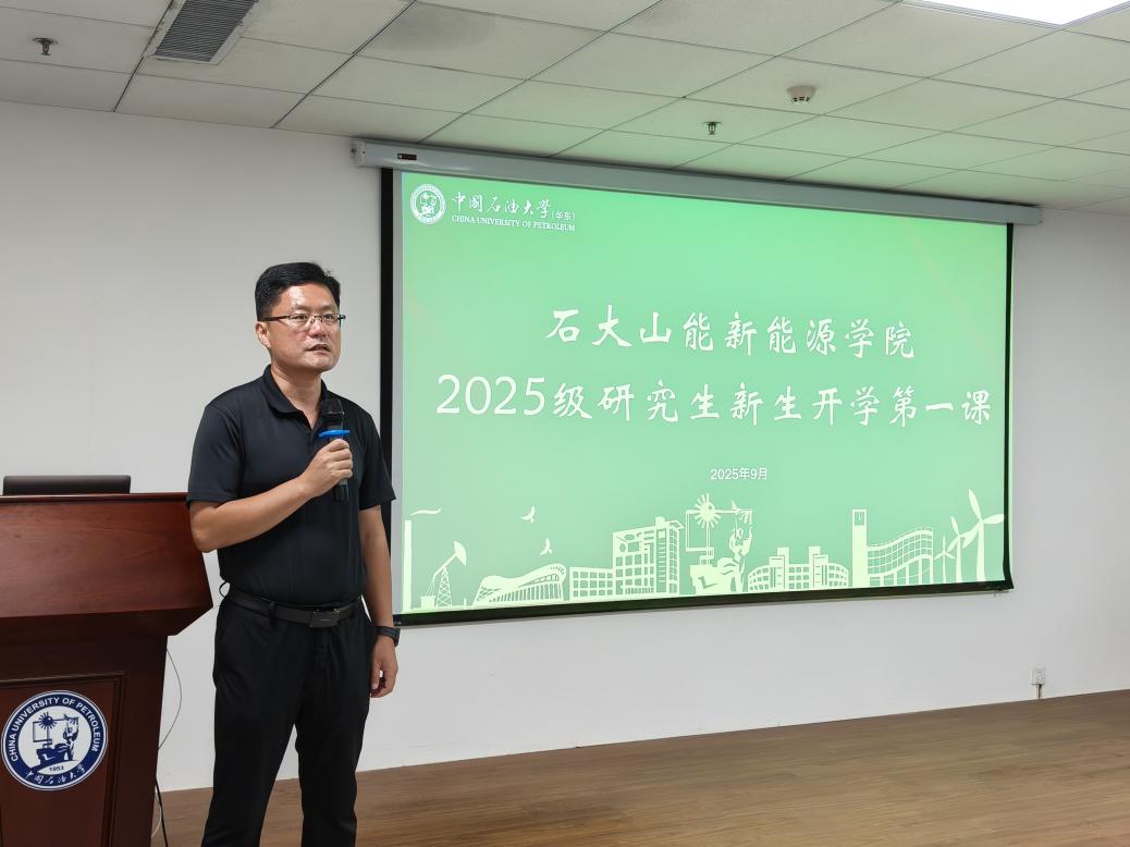 随后,学院副院长赵东亚教授为新生讲授开学第一课。赵东亚教授以系统深入的讲解,从学科发展、科研方向、成长路径等维度为新生答疑解惑,既解读了新能源领域的发展机遇与挑战,也为新生如何规划科研学习、找准奋斗目标提供了专业指导。