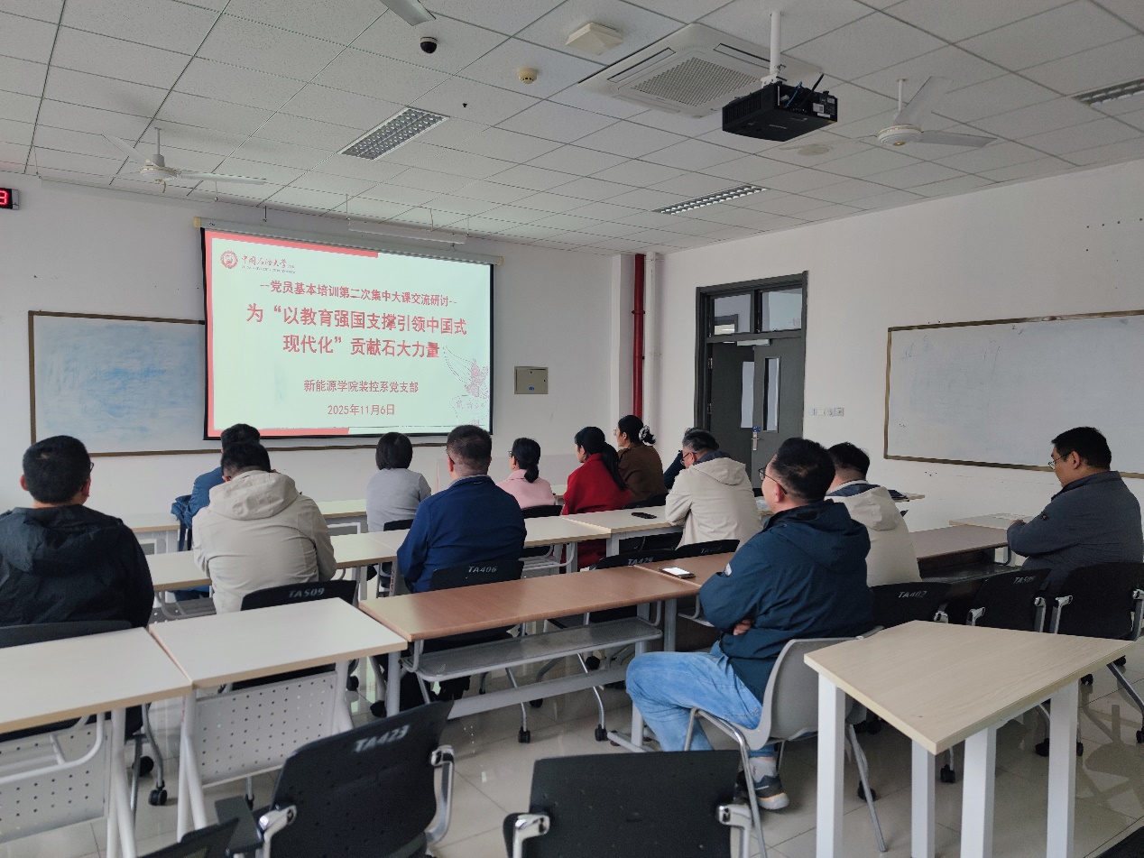 最后,支部组织全体党员围绕党员基本培训集中大课内容——怀进鹏部长《深入学习贯彻习近平总书记关于教育的重要论述 以教育强国支撑引领中国式现代化》讲话精神开展专题研讨。研讨主题:“为‘以教育强国支撑引领中国式现代化’贡献石大力量”。