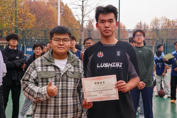 我院男篮队长王奕栋主持闭幕式,并宣读比赛结果。辅导员王嘉为环设队、装控队、能动队颁发冠军、亚军、季军奖状。赛后,各专业代表队热情问候并合影留念,以示友谊。