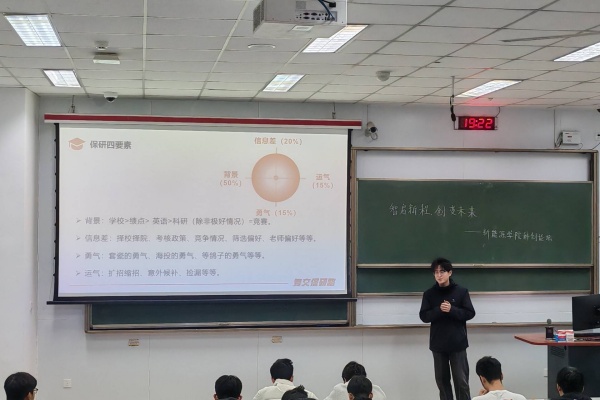 论坛首先进入经验分享环节。三位嘉宾结合自身扎实的专业积累与实践经历,围绕学业提升与科研实践两大核心维度展开讲解。在学业方面,他们从课堂专注、课后复盘,到学习计划制定与时间管理,逐一分享实用技巧,强调夯实专业基础对长远发展的重要性。随后,在科研实践部分,嘉宾们系统介绍了科创项目参与流程与课题探索方法,并结合各类竞赛经历,阐述“以赛促学、以赛促练”的实践价值,鼓励同学们积极参赛,提升解决实际问题的能力。在随后的互动交流环节,现场同学围绕专业学习、项目选题、团队协作等问题踊跃提问,三位分享人一一细致回应,现场气氛活跃,交流深入。