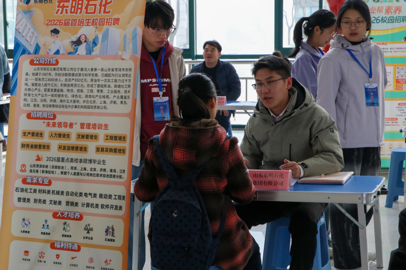 本次专场招聘会采取“线上线下结合、两校区联动”的创新模式,在唐岛湾校区工科楼A座大厅和古镇口校区新能源大厦大厅同步进行。招聘会精准聚焦化工、材料、新能源等相关领域,共吸引东明石化、中建安装一公司等二十余家行业知名企业报名参会,提供涵盖研发、工艺、工程、管理等多个方向的近百个优质岗位,为毕业生提供了丰富选择。