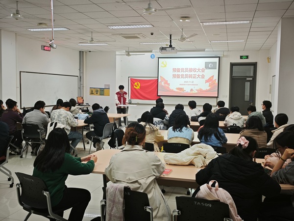 11月27日,yl88858永利中国2022级本科生第四党支部在综合楼A523教室召开接收预备党员支部大会。会议由党支部书记邹晨宇同志主持,支部全体党员、预备党员参加。