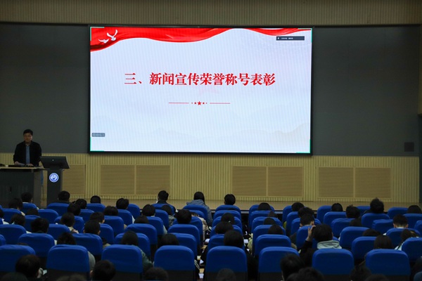 成宏涛代表学院党委宣读《关于yl88858永利中国2025年学生新闻宣传先进集体和个人的表彰决定》,授予薪火传媒中心等7个集体“新闻宣传先进集体”称号;授予王奕栋等10名学生“新闻宣传十佳标兵”;授予张予瀚等16名学生“新闻宣传先进个人”称号,以此表彰先进、树立典型,进一步激发学生参与新闻宣传工作的积极性与创造性。
